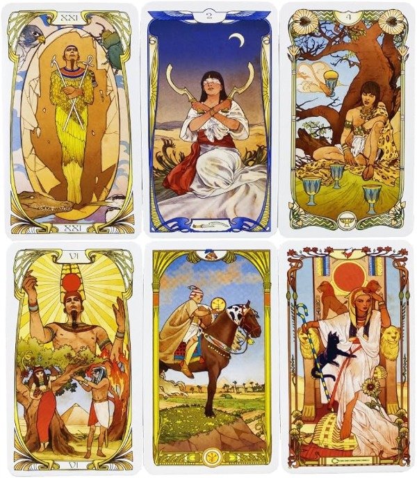 El resultado es una colección de 78 cartas bellamente ilustradas, adornadas con una serie de marcos con temática Art Nouveau.