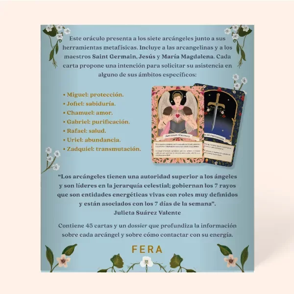 Contiene 45 cartas y un dossier que profundiza la información sobre cada Arcángel y sobre cómo conectar con su energía.